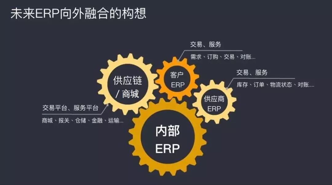 ERP系统有一个原始的概念叫协同办公,这个协同,我们叫内部协同,是公司采购与销售,销售与财务,财务与仓库等内部职能的协同,加上企业订购商城,也只算是多了个与客户的订单协同,属于企业的私域协同。
