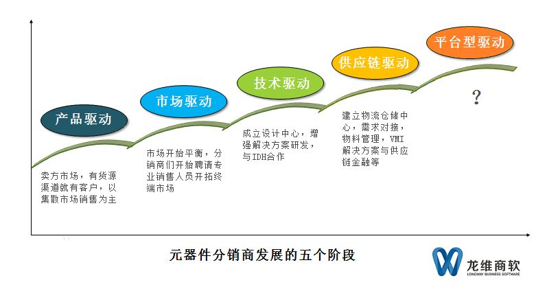 下图是我18年6月份写《半导体分销商的困惑》时画的一张图:元器件分销商发展的五个阶段。